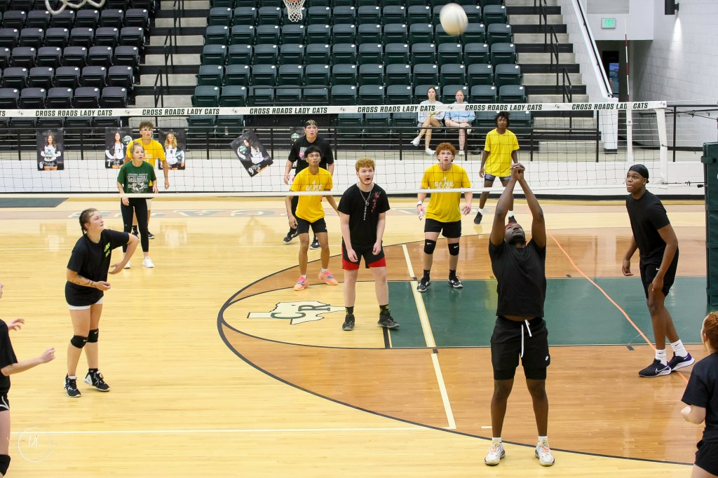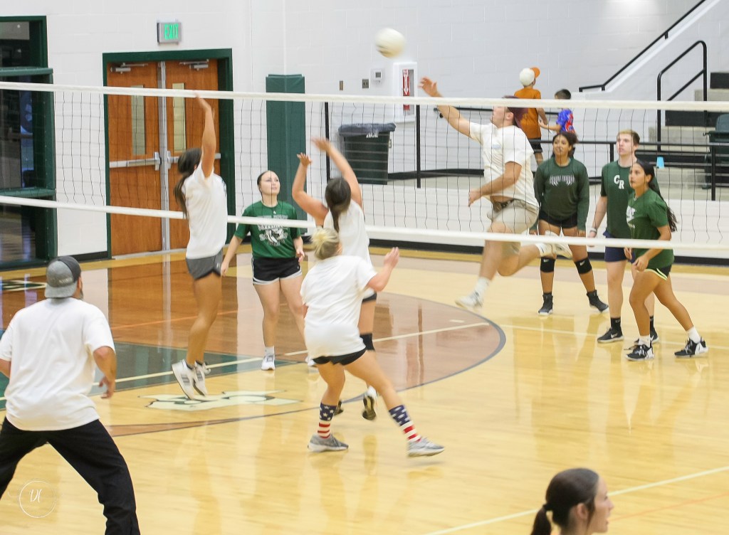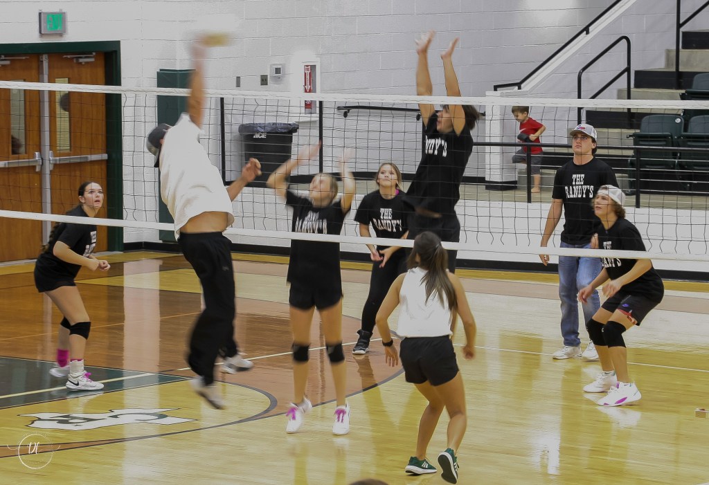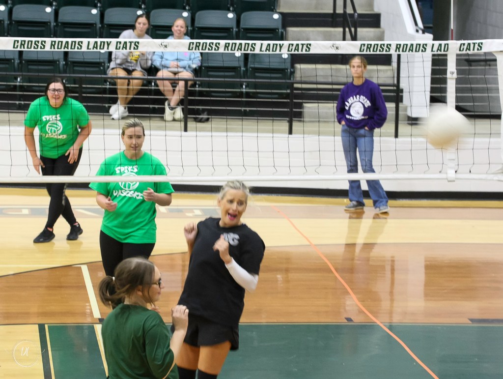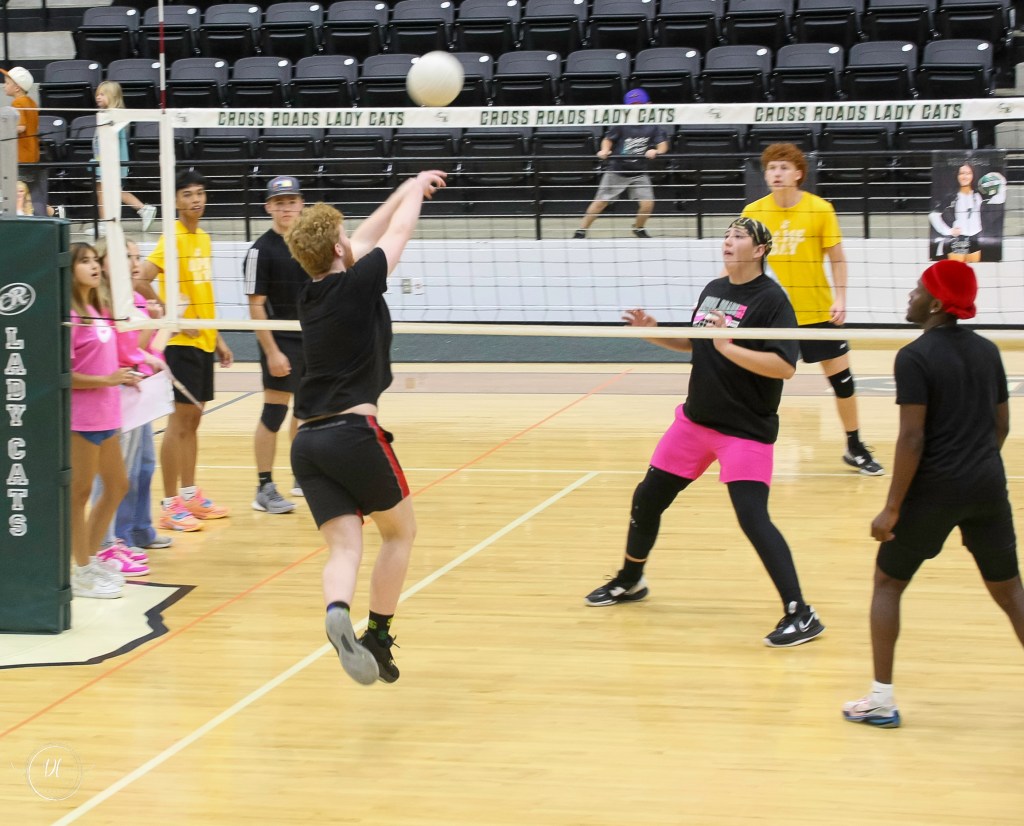 However, not to be underestimated, the group of adults who had once proudly worn the Cross Roads colors proved that age was just a number. Though a few years removed from their high school days, their experience and wisdom on the court shone brightly. Their strategic plays, combined with their uncanny ability to anticipate the opponent’s moves, earned them well-deserved applause and admiration from the crowd. The matches grew increasingly intense as the evening wore on, with each team giving their all to secure the coveted title. The high schoolers and the alumni battled fiercely, leaving no room for complaceny. The energy in the gym reached its peak as the final set approached, and the cheers from the spectators reverberated.