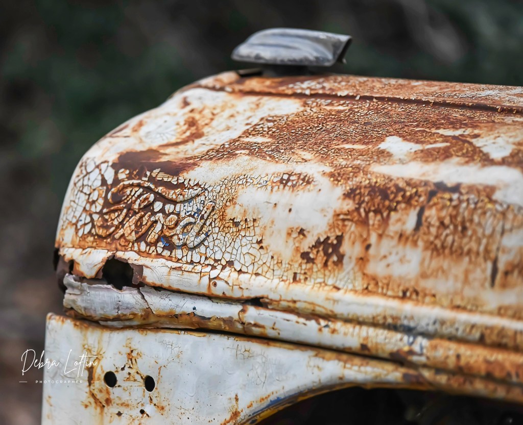 The close-up of the tractor’s hood captivates me. The embossed “Ford” logo, albeit cracked and worn, stands as a testament to its legacy. The surface, a mosaic of rust and faded paint, speaks of years spent under the sun and rain, enduring the elements. The intricate patterns of wear create a sense of beauty in decay; it’s as if tractor wears its history proudly. Think of the families who relied on this machine, the hands that have worked on it, and the fields it once tilled – each a thread in the fabric of rural life.