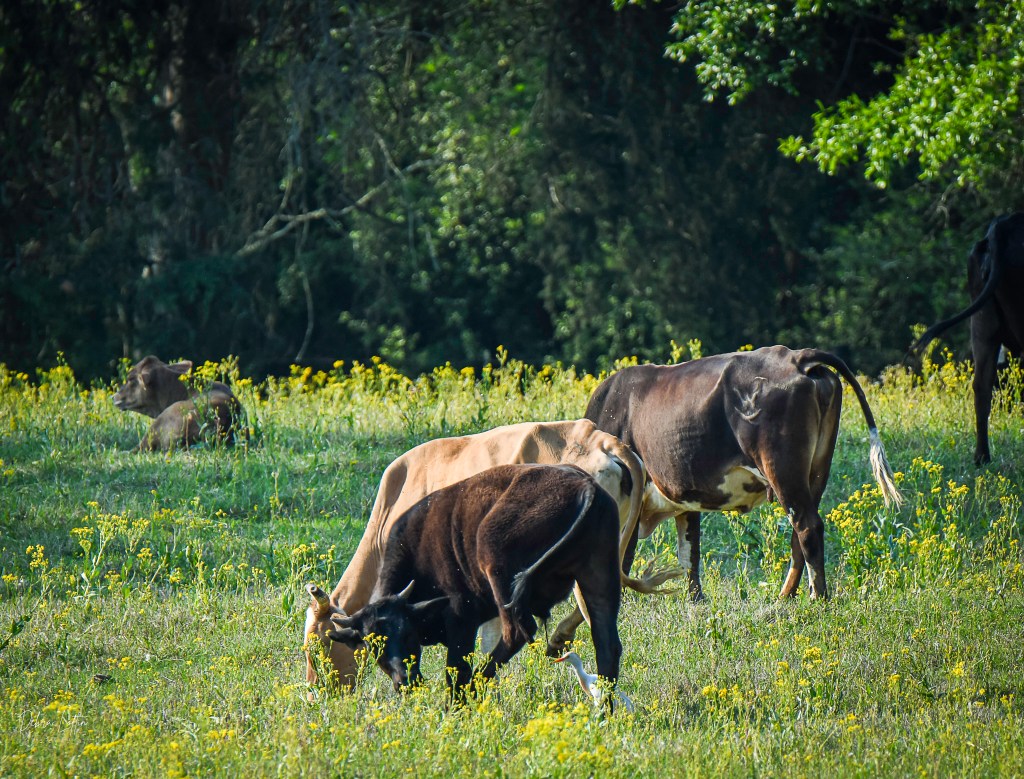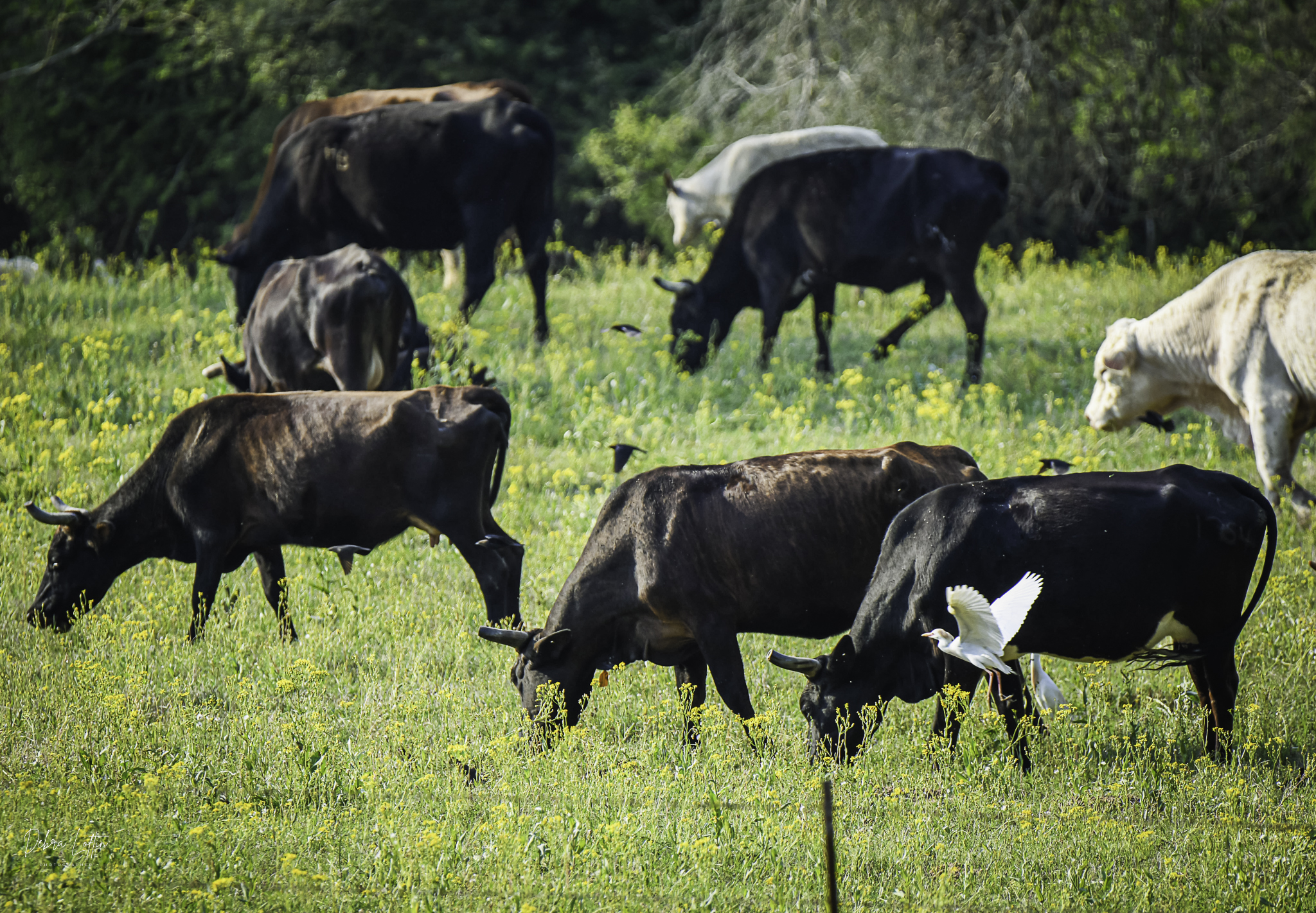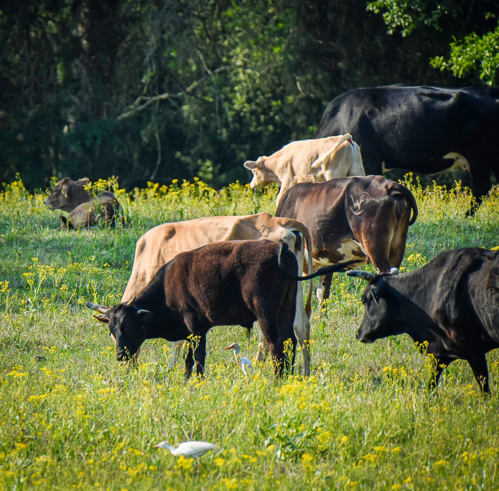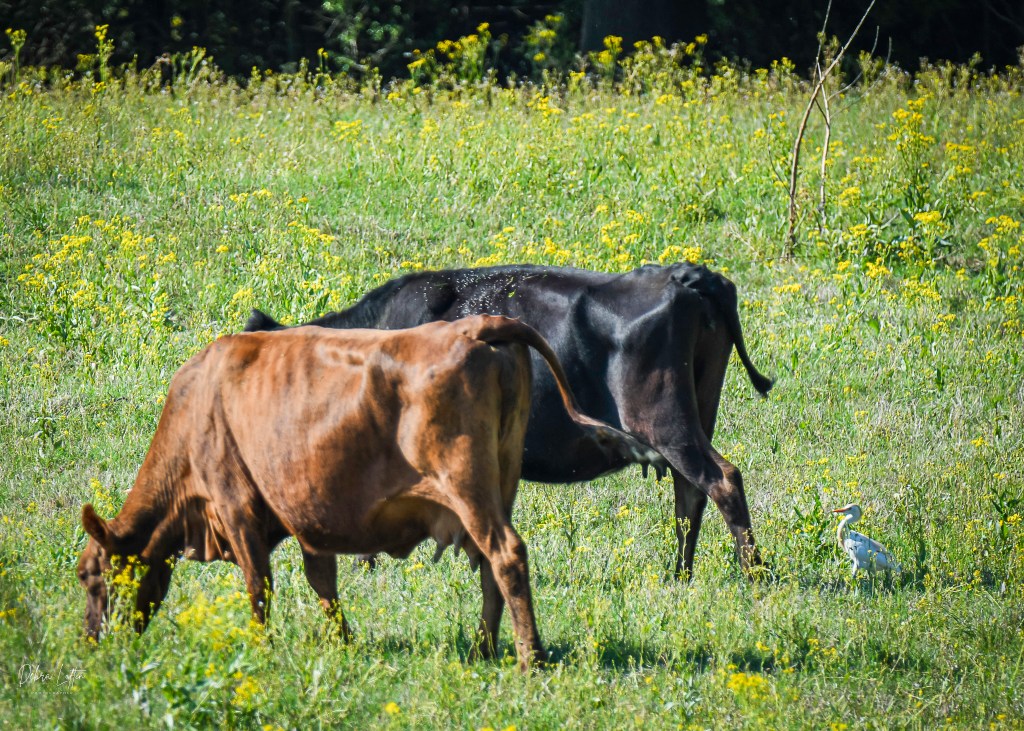 The Buddy System: here we have Brown Cow and Black Cow just vibin’ in the sunshine, grazing like there’s no tomorrow. Meanwhile, a single egret stands there like he’s their bodyguard or possibly their overly judgemental roommate. You just know what he’s thinking, “Ya’ll really eating the same patch of grass again?”