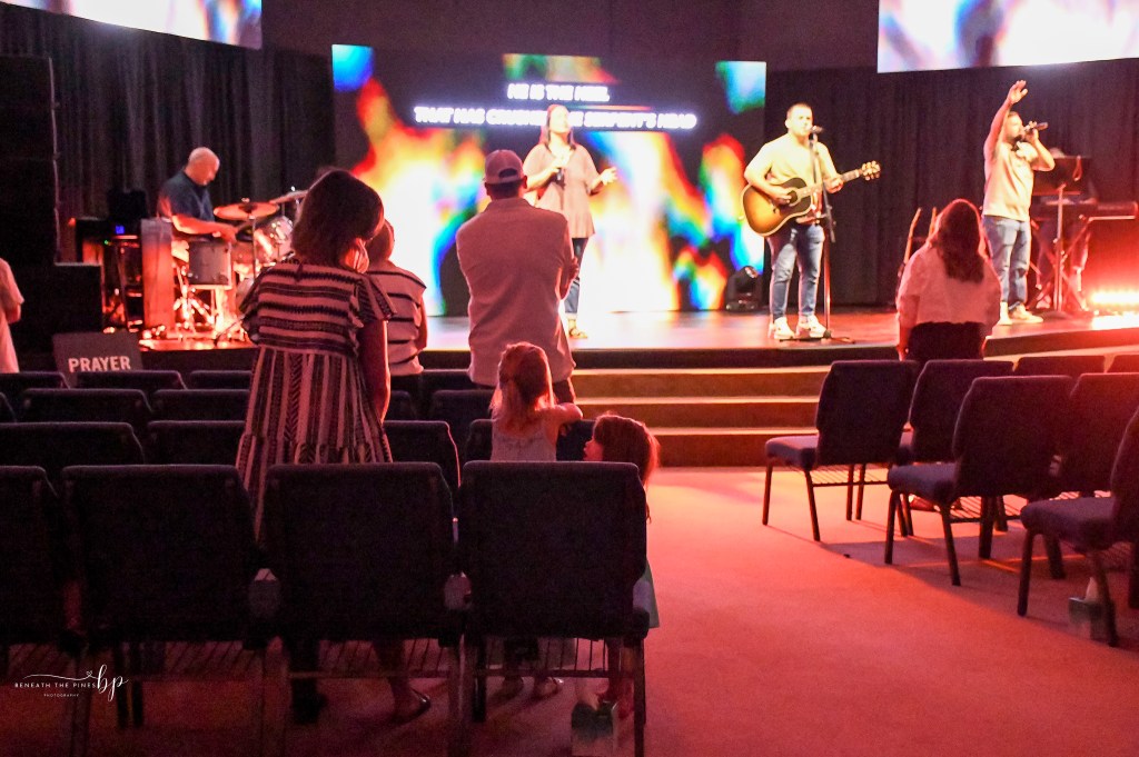 This captures a sacred moment – members of the church standing in worship, hearts lifted, and voices raised. What you can’t hear is the sound of tiny feet tapping against the floor, a little girl whispering questions only her mom can hear, and a room full of people quietly chasing eternity. This is what church looks like — messy, beautiful, and real.