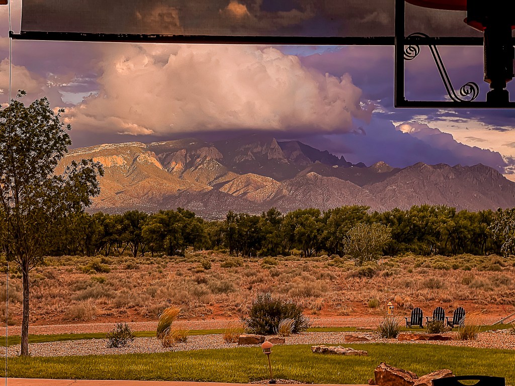 As I stood under the soft amber glow in the afternoon sun at Tamaya Inn Resort, I felt time stand still just for me. The Sandia Mountains, bathed in purple and gold, stretched out majestically beneath the swirling clouds, painting a masterpiece that no camera could capture – even though I tried.