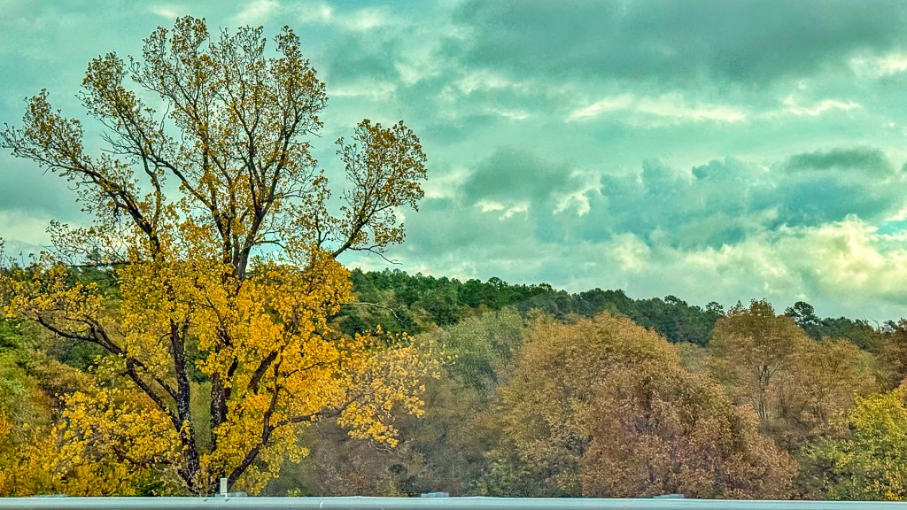 As we moved further north, the trees started to change — a soft hint of gold against the bluish-gray sky. Fall has always been my favorite kind of goodbye; it lets go so gracefully. I rolled down the window and just let the wind carry the moment.