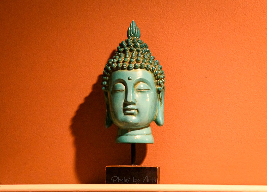 The calm presence of a turquoise Buddha head statue greeted me with quiet grace. The soft lightning against the terracotta wall made the details glow, creating a sense of peace that instantly grounded the space.