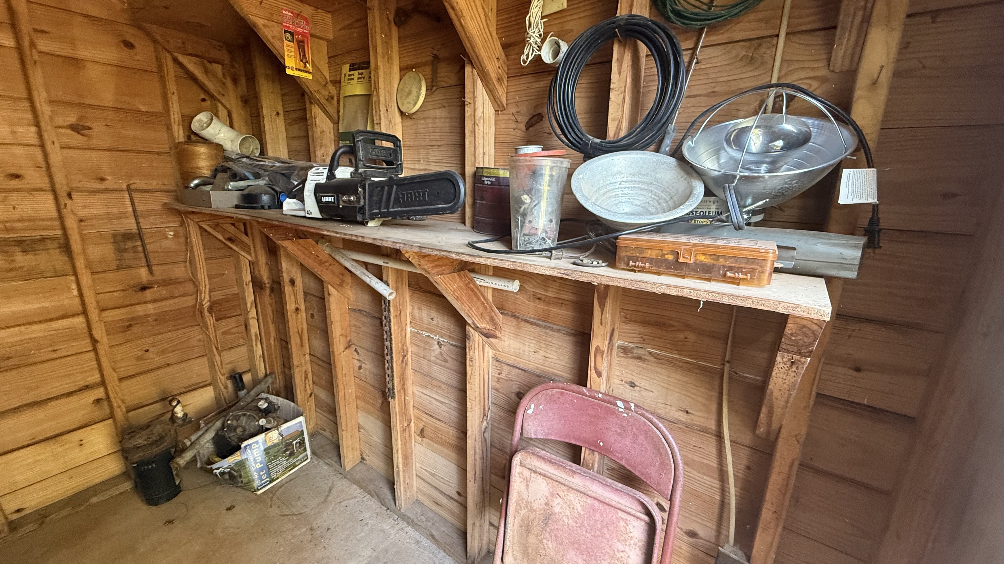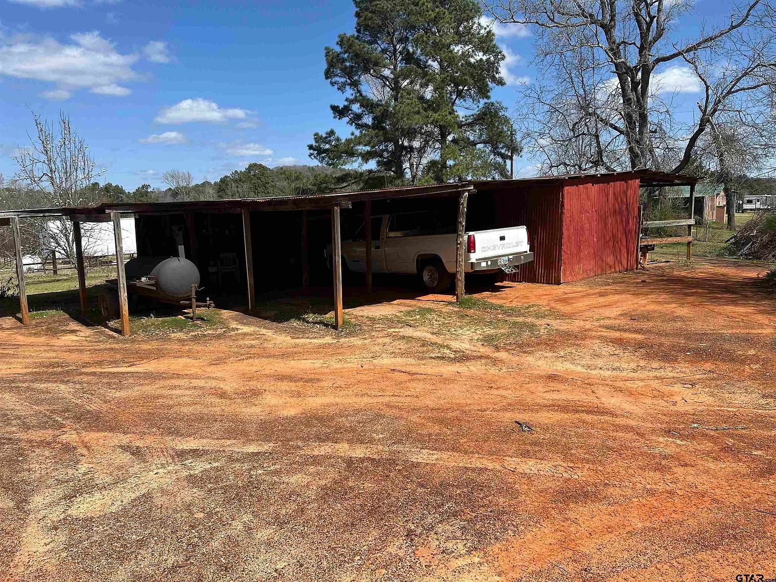 3-Car Garage Wood Barn with storage and additional buildings on property that shines with its extra structures — perfect for storage, hobbies, or future projects. Including wood barn with 3 car garage spots as well as 2 separate storage areas, a well house, a red portable building that is ideal for storage, workshop space, or customization to your liking.