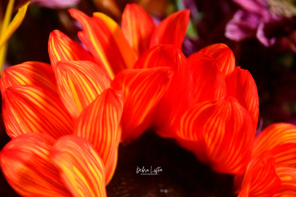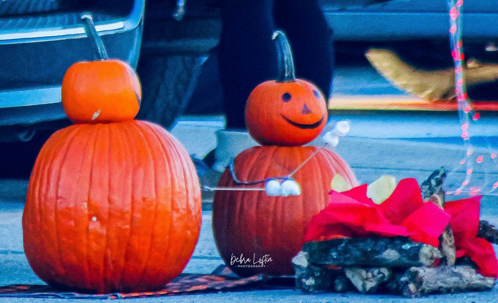 Petals with natural pinstripes, like they are wearing little flame pjs. Orange doesn’t always yell … sometimes it giggles. Just when I thought my orange era was done, I walked into a scene straight out of a Hallmark Halloween knock-off: 2 pumpkins sitting together at what I can only describe as a tiny campfire —