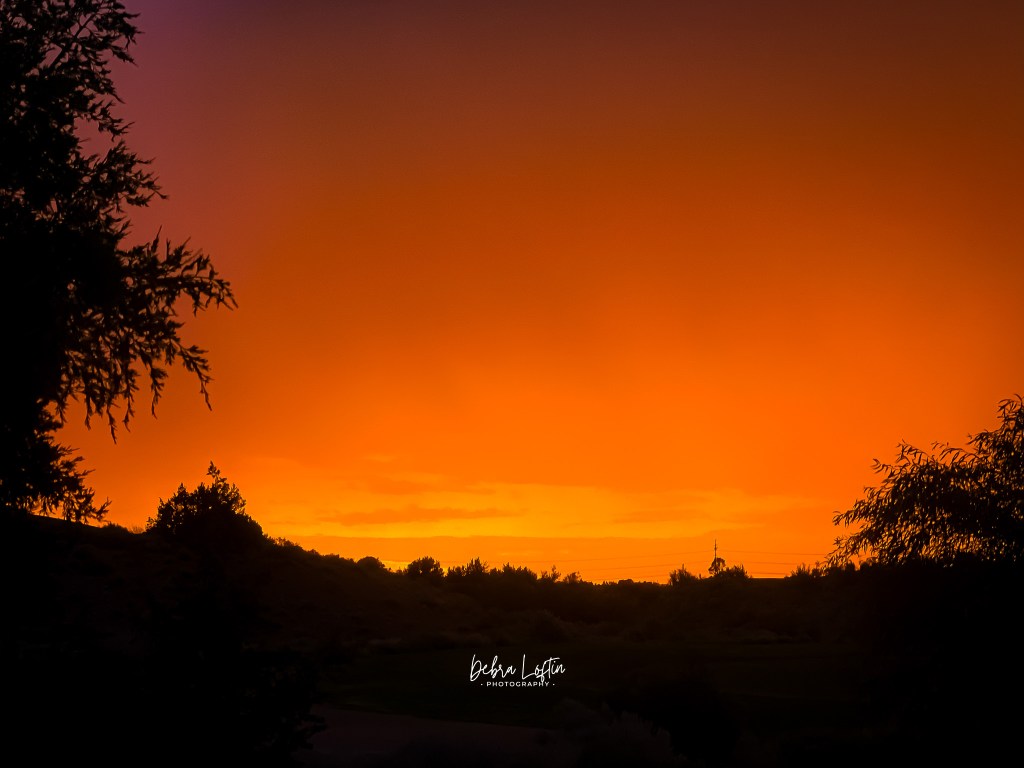 a sunset so orange it looked like someone adjusted the saturation and said, “Yeah, that’s fine.” The whole horizon glowed like a stovetop set to medium-high. But one of my favorites is