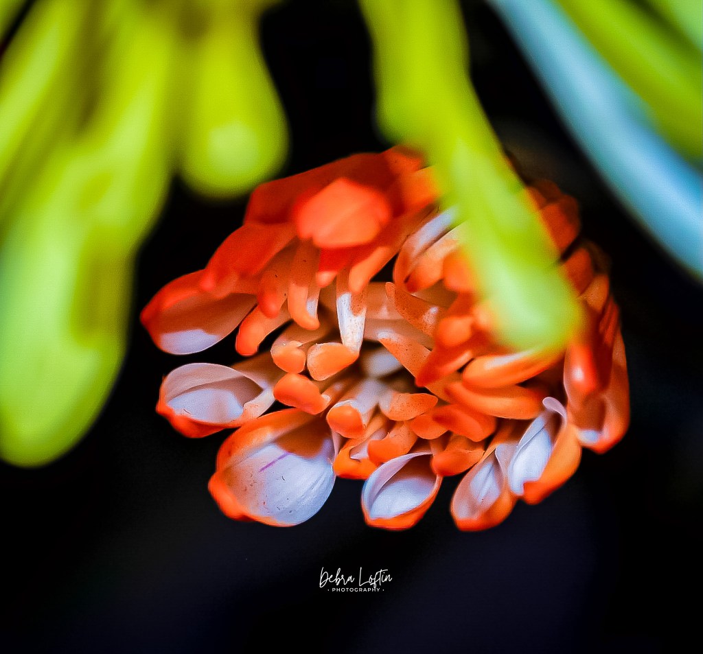A flower opening slower than a teenager getting out of bed for school. Its orange tips peeking out like, “Is it safe? Is the world still weird?” Yes, sweetheart, it is. Now hold still for your close-up.