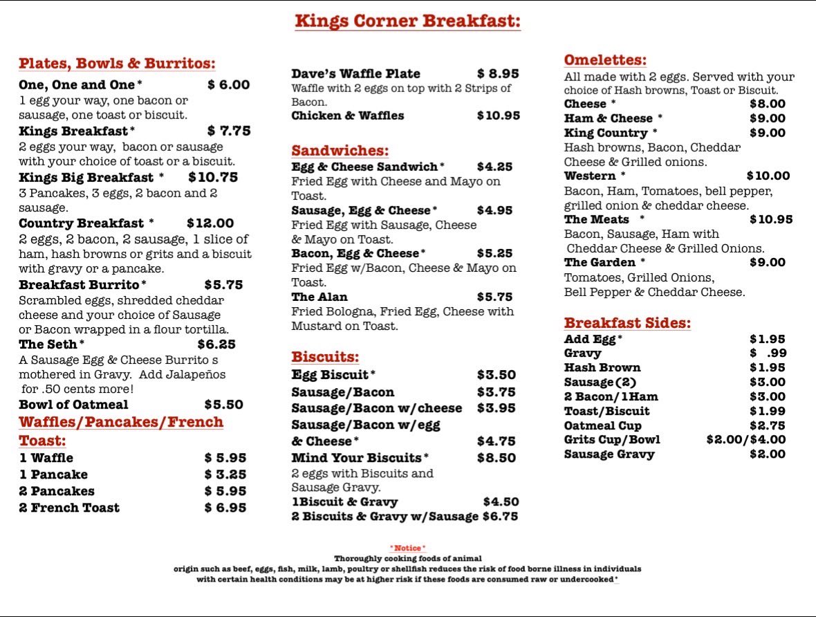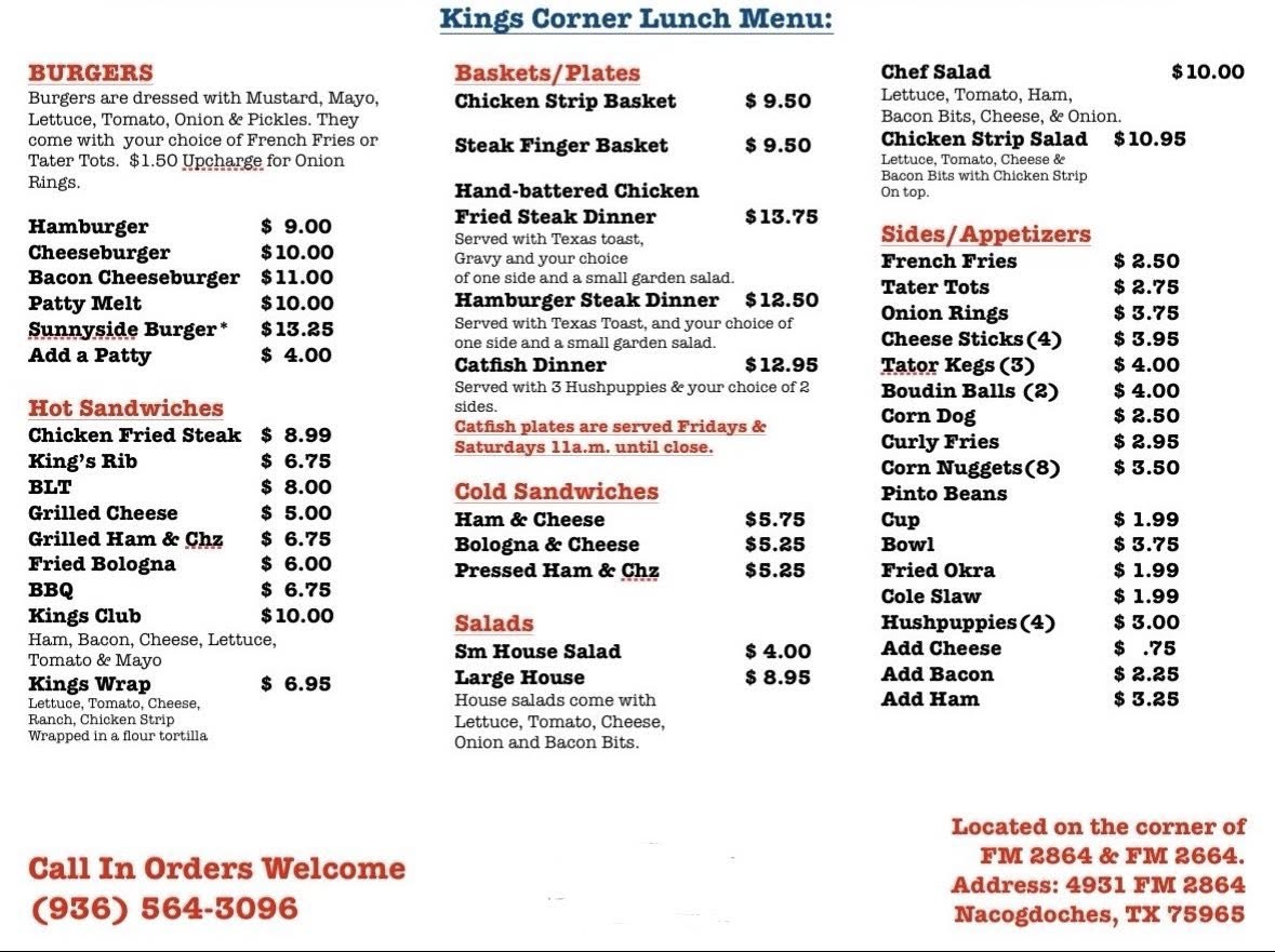 What does King’s Corner offer? Something more valuable. Community. A place where the waitress knows your order before you sit down. Where someone will ask about your family. Where your meal tastes better because it comes with laughter from the next table.